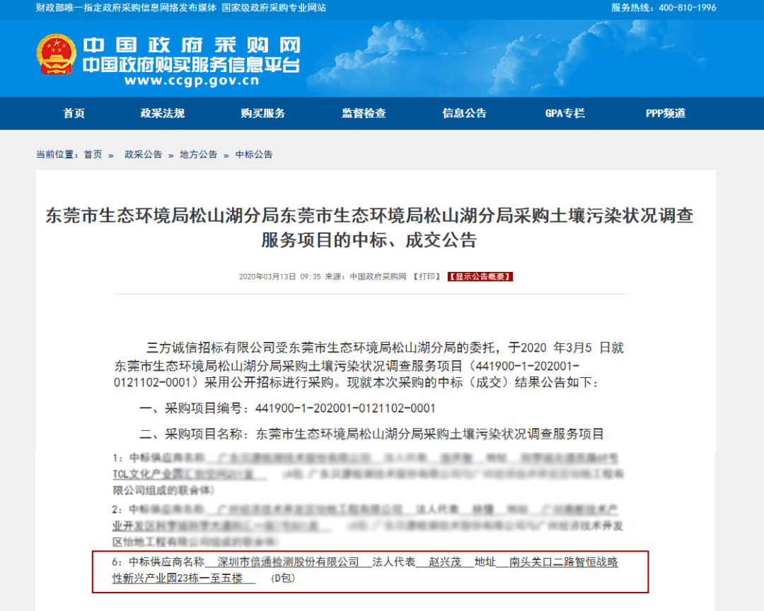 陽春三月,萬物復(fù)蘇,隨著國內(nèi)新型冠狀病毒疫情不斷好轉(zhuǎn),倍通檢測集團(tuán)在做好疫情防控同時,也在緊鑼密鼓有序的復(fù)工復(fù)產(chǎn),近日從中國政府采購網(wǎng)了獲悉,倍通檢測集團(tuán)中標(biāo)東莞市生態(tài)環(huán)境局松山湖分局 2020 年度采購?fù)寥牢廴緺顩r調(diào)查服務(wù)項目,中標(biāo)項目金額425.6萬元,喜迎復(fù)工戰(zhàn)“疫”第一標(biāo)開門紅!