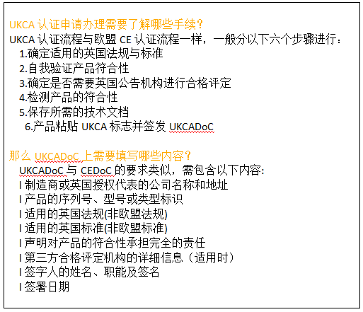 2、UKCA標(biāo)識的規(guī)則基本復(fù)制EU的CE標(biāo)識規(guī)則。即:UKCA標(biāo)識也是基于制造商符合性聲明的原則。可以基于自我聲明做CE標(biāo)識的產(chǎn)品,同樣可以基于自我聲明做UKCA標(biāo)識。現(xiàn)有需要第三方NB機(jī)構(gòu)評估后才做CE標(biāo)識的產(chǎn)品,進(jìn)入英國需要由英國的指定機(jī)構(gòu)做第三方評估了方可使用UKCA標(biāo)志。