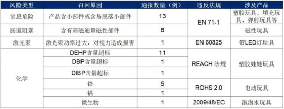 2022年7月,歐盟Rapex系統(tǒng)共召回43例玩具產(chǎn)品,其中1例產(chǎn)自捷克,1例產(chǎn)自匈牙利,2例產(chǎn)自波蘭,1例產(chǎn)自印度尼西亞,5例產(chǎn)地未知,其余均產(chǎn)自中國內(nèi)地。共有9例磁力球玩具因磁通量超標(biāo)被召回,如果兒童不慎吞下,磁力球可能會(huì)相互吸引,導(dǎo)致腸道堵塞或穿孔。